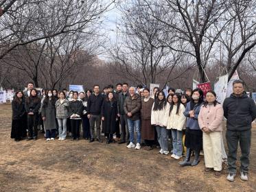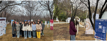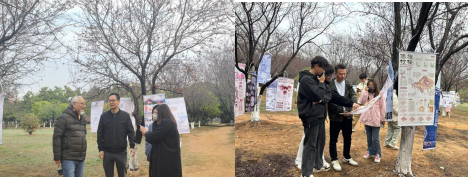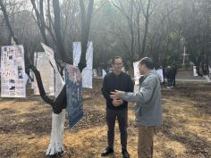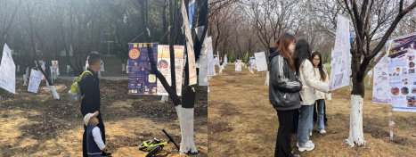 在展览布展期间,带队老师肩负着重要的责任,他们提醒同学们要特别注意 树枝的承受力。不为挂海报就故意折断树枝,要做到文明布展及观展,不仅让展览成为知识与艺术的盛宴,更要成为文明与素养的展示平台。