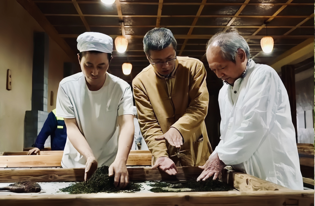 这份自信,不仅凝结于张文旗老师的坚守,更沉淀在茶业的器物与史料之中——从茶庄到玉露非遗馆,诉说着恩施玉露的传承史,本就是中华文化自信的缩影。茶篓静静立在展柜,竹篾间的茶垢与裂痕记录着时光;蒸青器具泛着光泽,凹陷的槽痕里留存着茶人的温度。在非遗工坊内,制茶老师傅躬身演示“搂、搓、端、扎”的古法技艺,实践团队员围站在蒸青灶旁,目光追随着他的双手,指尖轻触余温尚存的茶叶,仿佛触到了千年工艺的脉搏。