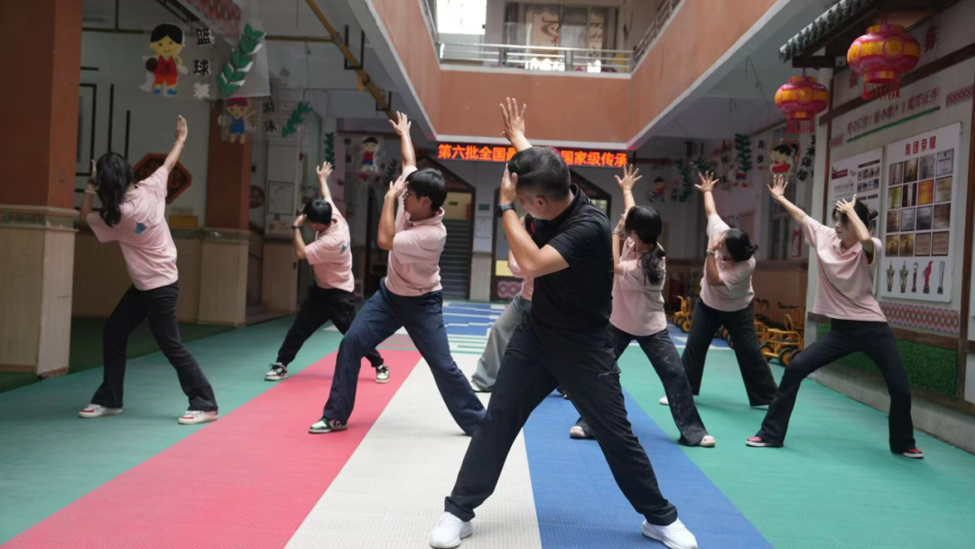 肉连响传承基地的排练厅里,传承人刘守红的“十响”动作行云流水,手掌击额、肘撞肩、膝碰腰,声响如“雨打芭蕉”。“这‘颤步’要像挑着担子走山路,”他扶住摇晃的实践团成员,“身子稳,步子活,才是土家人的筋骨。”成员们练到手掌发红,终于让“啪嗒”声连成了串。