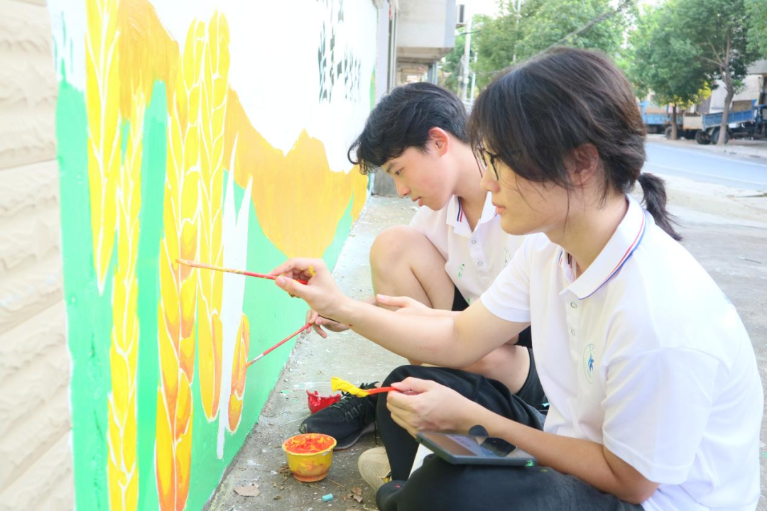 "艺"抹星火暑期实践团深入乡村开展墙绘创作,通过实地调研挖掘当地特色产业与乡村振兴成果,将斑驳老墙化作艺术画布。团队成员精心绘制,把乡土元素转化为绚丽画卷,既提升了村容村貌,又打造出具有独特辨识度的乡村艺术景观,为乡村文旅发展注入新活力,以艺术绘就乡村振兴新图景,进一步为当地文旅融合发展注入了新的活力。