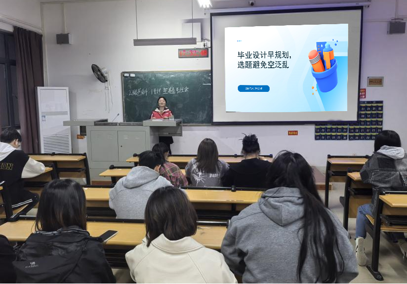 精准攻克痛点,规划毕业设计路径大四班级围绕毕业设计这一核心任务,开展了具有针对性的指导班会。22级艺科1班班主任侯力萌老师以“毕业设计早规划,选题避免空泛乱”为主题,梳理了毕业设计的关键时间节点,剖析了选题过大、技能不匹配、同质化这三大难点,并给出了“结合兴趣与发展方向、控制选题范围、提前沟通确认”的核心建议,同时详细阐述了界面设计、游戏角色等方向的技术工具与实施步骤。