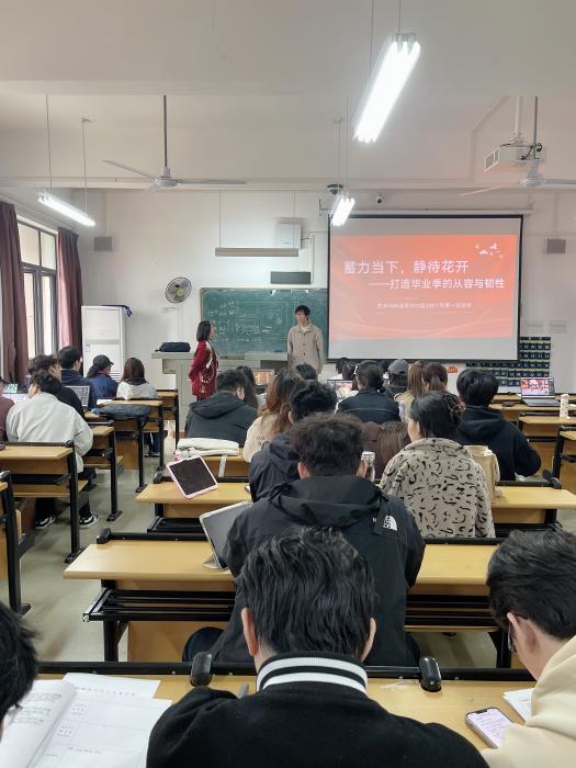 针对低年级新生融入校园和基础培养的需求,25级艺科1班与24级艺科1班分别围绕“环境适应”与“健康成长”这两个核心主题开展活动。在25级“融入新环境,开启新征程”主题班会上,班主任汪丰老师详细介绍了艺术与科技专业“艺术+科技”的融合培养目标,引导新生了解大学的自主学习模式和时间管理方法,同时加强宿舍安全、网络诈骗防范等安全教育,助力新生快速建立专业归属感和校园安全感。