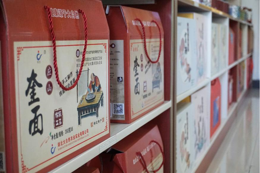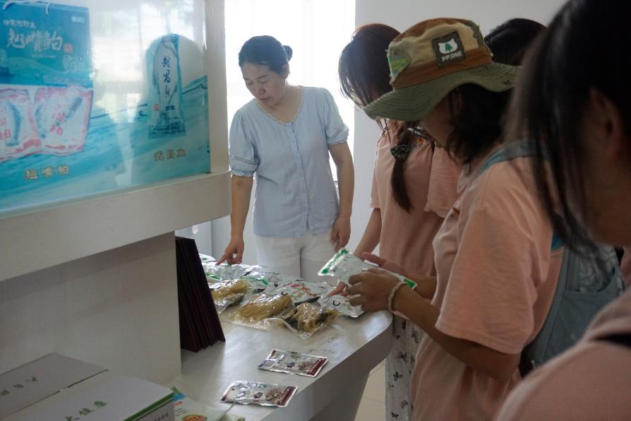 在工厂负责人高主任的带领下,实践团走进产品样品间。奎面爽滑、应山滑肉鲜香、箭杆白酸菜酸爽,一件件极具地域特色的非遗美食陈列眼前,墙上满目的荣誉证书与创新成果诉说着广水自然农业传承与创新的故事,更深刻体会到非遗文化背后蕴含的智慧与匠心。