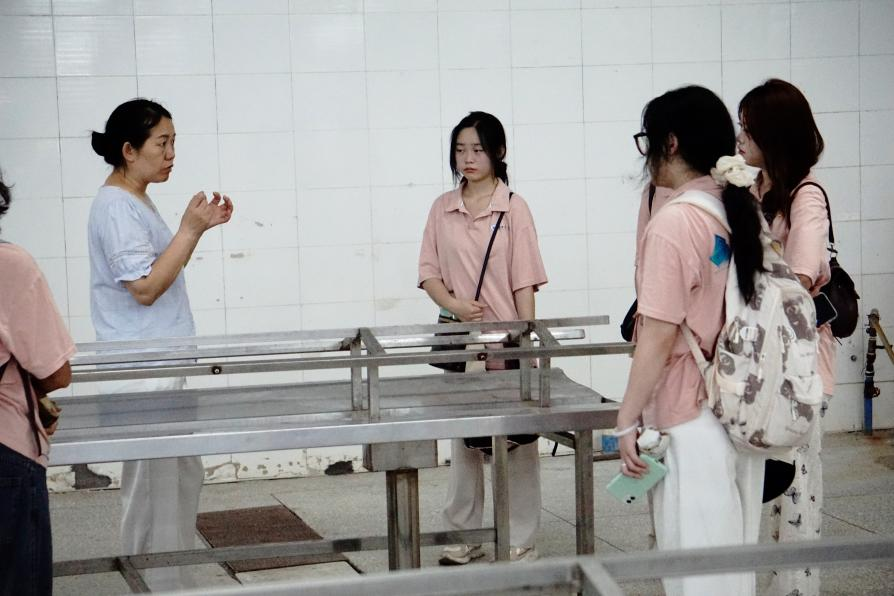 随后,实践团深入非遗产品制作车间,近距离观察非遗美食的制作工艺。原料处理区、特产制作核心区、成品包装区泾渭分明。传统特产制作工艺与现代设施在这里完美融合,老师傅们将世代相传的秘方与智能设备相结合,让特产既保留传统风味,又符合现代生产标准。这次考察不仅加深了对传统文化的理解,更激发了用艺术设计助力非遗传播的创作灵感。