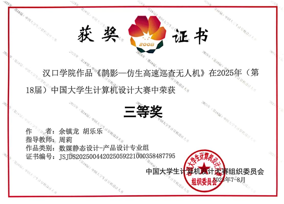 艺术设计学院的三支参赛队伍是在激烈的校赛、省赛选拔中层层突围的佼佼者。其中,产品专业学生余镇龙、胡乐乐设计的《鹊影——仿生高速巡查无人机》,在周莉老师的悉心指导下,展现了独特的仿生设计理念与先进的技术应用;视觉传达设计专业学生张泫洁、周依然创作的《光尘录》,在万煦老师的指导下,以精妙的视觉表达传递出深刻的内涵;产品设计专业学生王传通、吴茜、刘博、琚亚芳、周子惠共同设计的《“木牛流马”快递运输车》,由张威和周莉老师共同指导,将传统智慧与现代快递运输需求巧妙结合,展现了团队的创新能力。