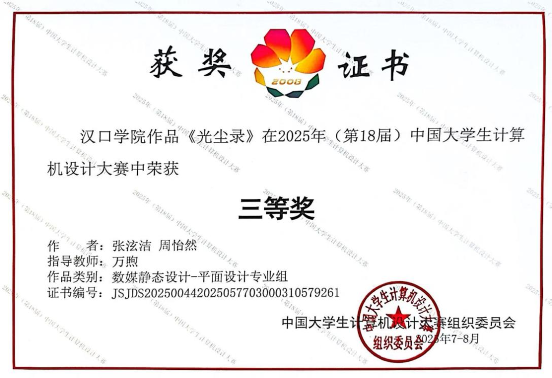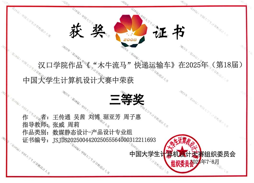 2025年7月22日至25日,备受瞩目的2025年(第18届)中国大学生计算机设计大赛国赛(南京南赛区)在南京大学仙林校区隆重举行。在这场高水平的赛事中,艺术设计学院的三支队伍凭借出色的表现脱颖而出,均斩获三等奖,为学院赢得了荣誉。