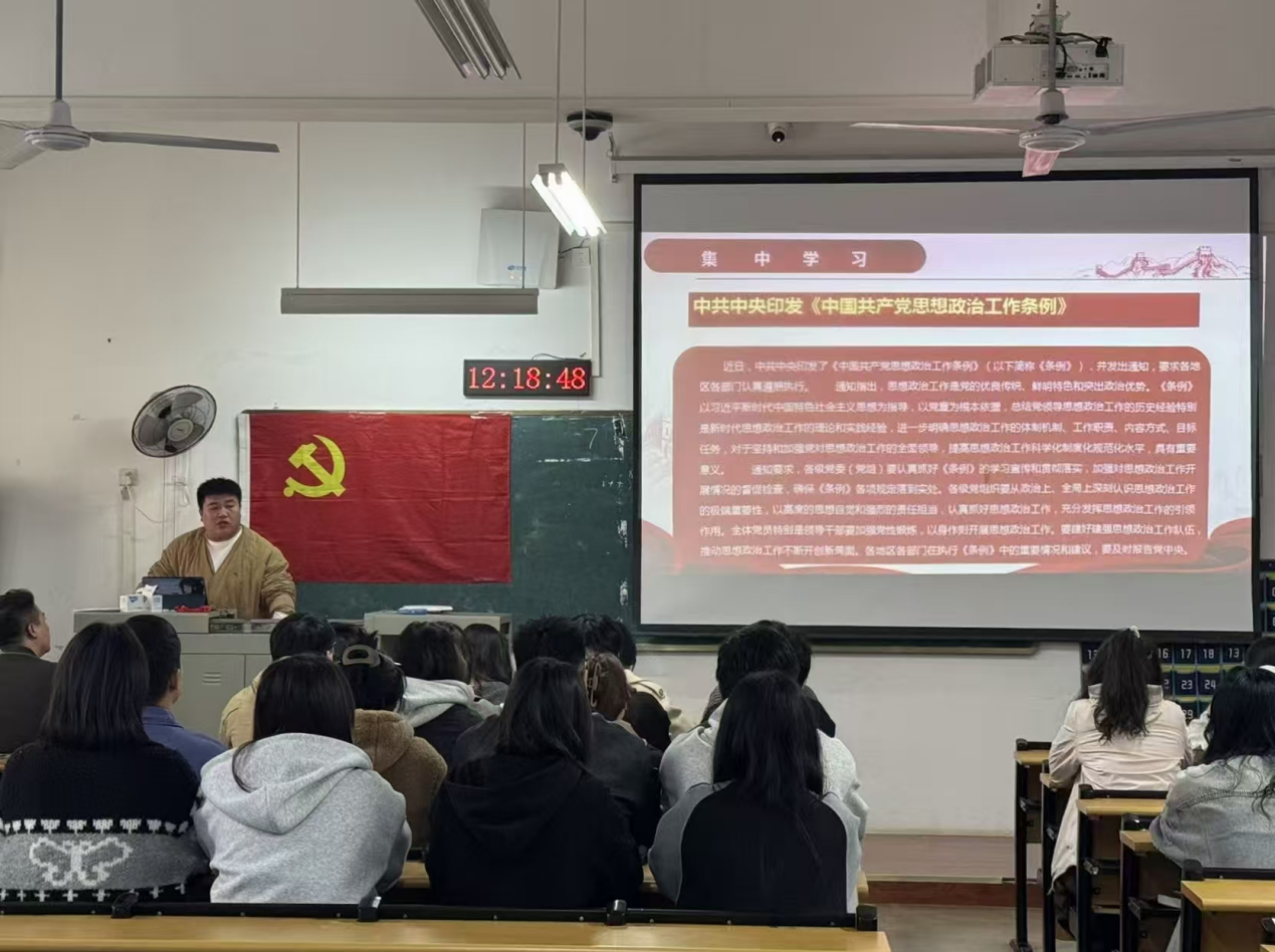 随后,文宇良同志带领全体党员同志深入学习了《中国共产党思想政治工作条例》、深入贯彻中央八项规定精神学习教育中央指导组暨中央层面工作专班总结会议召开等内容。会上,他强调:“条例是我们党历史上首部关于思想政治工作的统领性法规,全体党员必须深刻领会其精神实质,将‘两个确立’转化为‘两个维护’的实际行动。同时强调同志们要坚持以社会主义核心价值观为引领,树立正确的国家观、历史观、民族观、文化观、宗教观,不断增进“五个认同”,自觉投身中国式现代化建设。