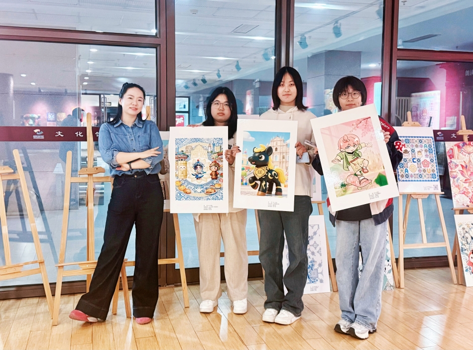 2025年11月14日,我院艺术与科技系3名学生将“汉艺智能与创新设计大赛——汉口记忆专项赛事”的设计成果与澳门纹样与当地标志性建筑相融合进行艺术创作。作品成功入选「纹・礼」澳门国际纹样设计大赛“创作新星奖”,并在南太子湖创新谷·武汉站现场展览。