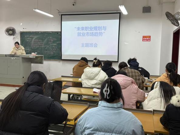 这并非张枞老师首次为班级开展生涯规划类班会。一年来,他还组织了“数字时代的信息素养:辨别谣言与理性发声”、“职业规划启蒙:你的未来可以有哪些选择?”、“对抗拖延症——从‘DDL战士’到自律达人”、“心理健康与压力管理”等主题班会,从信息辨别、职业认知、习惯养成、心理调适等多维度为学生赋能。“希望每一次班会都能成为大家解惑的窗口、成长的阶梯。”张老师表示,无论是毕业方向的选择,还是大学阶段的自我管理,她都愿陪伴同学们一起探索、一起突破。