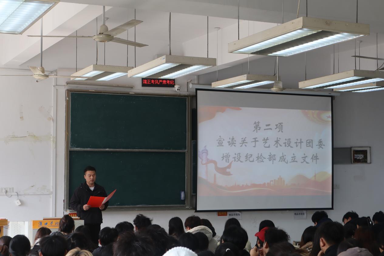 为健全学生组织架构、加强干部队伍建设,对年度工作进行复盘并规划未来发展方向,12月17日,艺术设计学院团委纪检部成立暨学生干部年终总结大会在1103顺利召开。参会人员有我院第一党支部书记文宇良、第二党支部书记万颢桢、分团委书记丁浪军、宿管会指导老师杨艺及全体学生干部。
