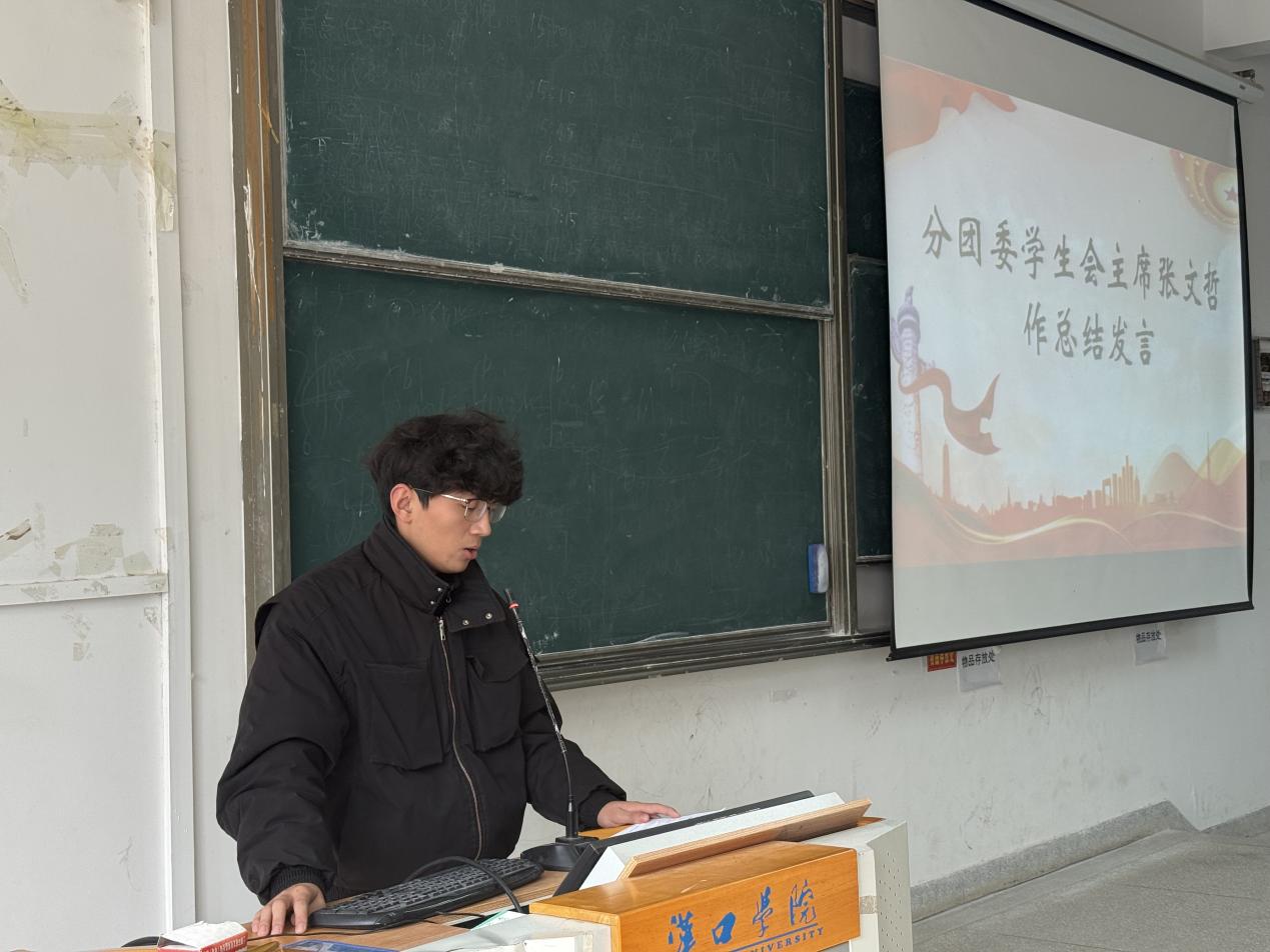学生会主席张文哲发言:他回顾了过去一年学院开展的各类文体、实践活动成果,同时表示,后续学生会将持续策划并开展系列特色活动与竞赛,进一步丰富同学们的校园生活,激发学生组织的活力与创造力。