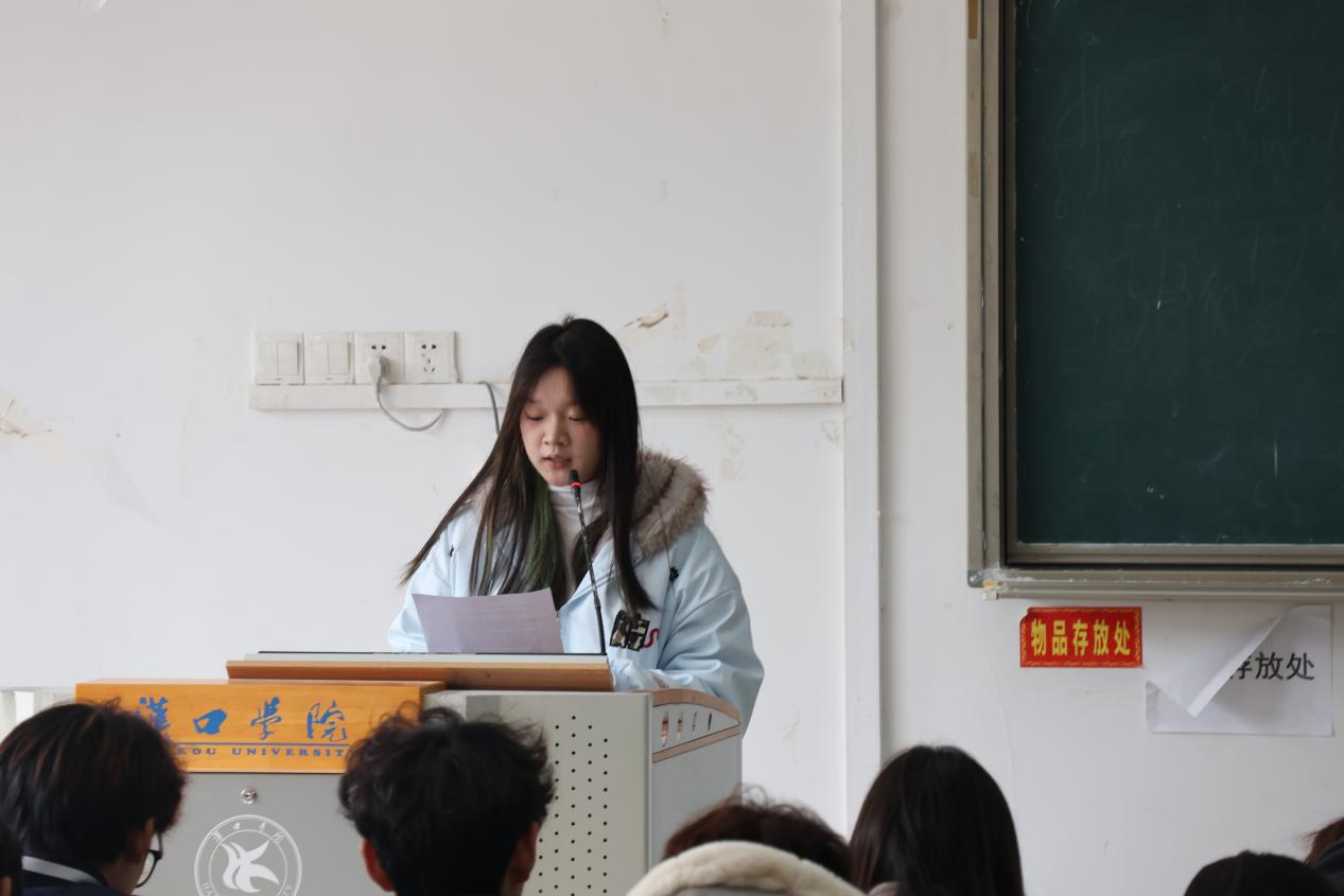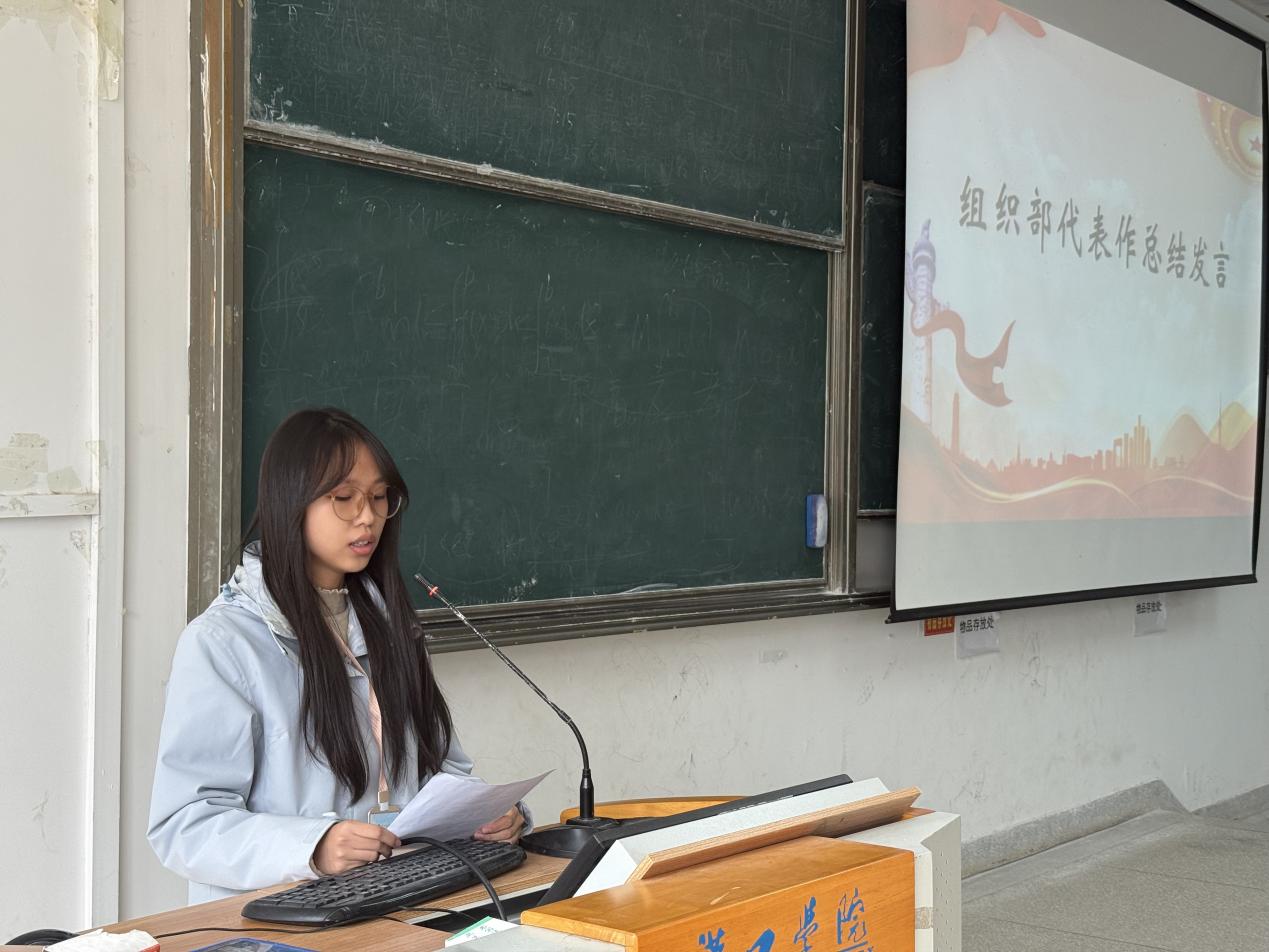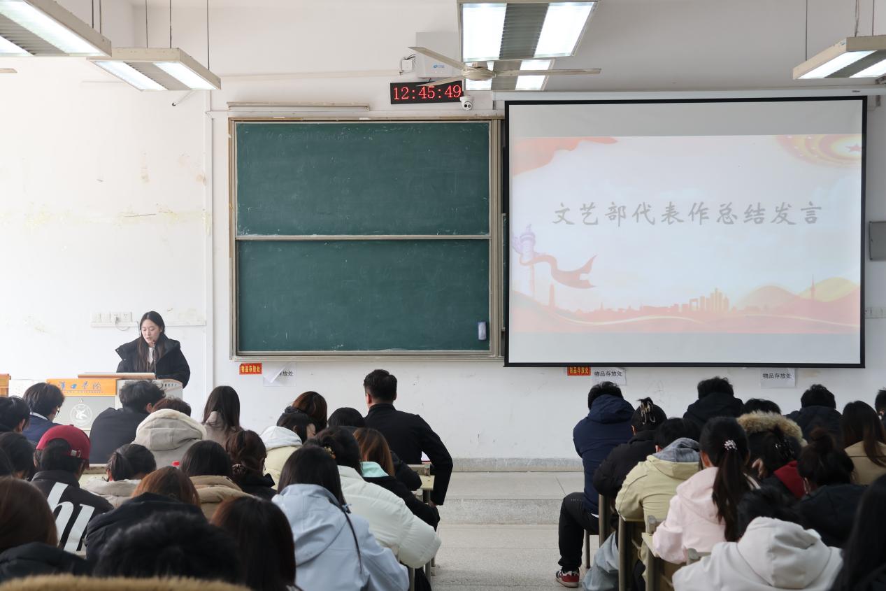 文艺部代表何周嫄发言:回顾过去一年部门优化了工作安排、吸纳了新成员,积极助力拔河比赛等学院活动开展,同时坚持常态化召开部门例会推进工作,取得了丰硕的工作成果。部门将秉持初心,凝聚团队力量稳步前行,持续为学院文艺活动的开展注入活力。