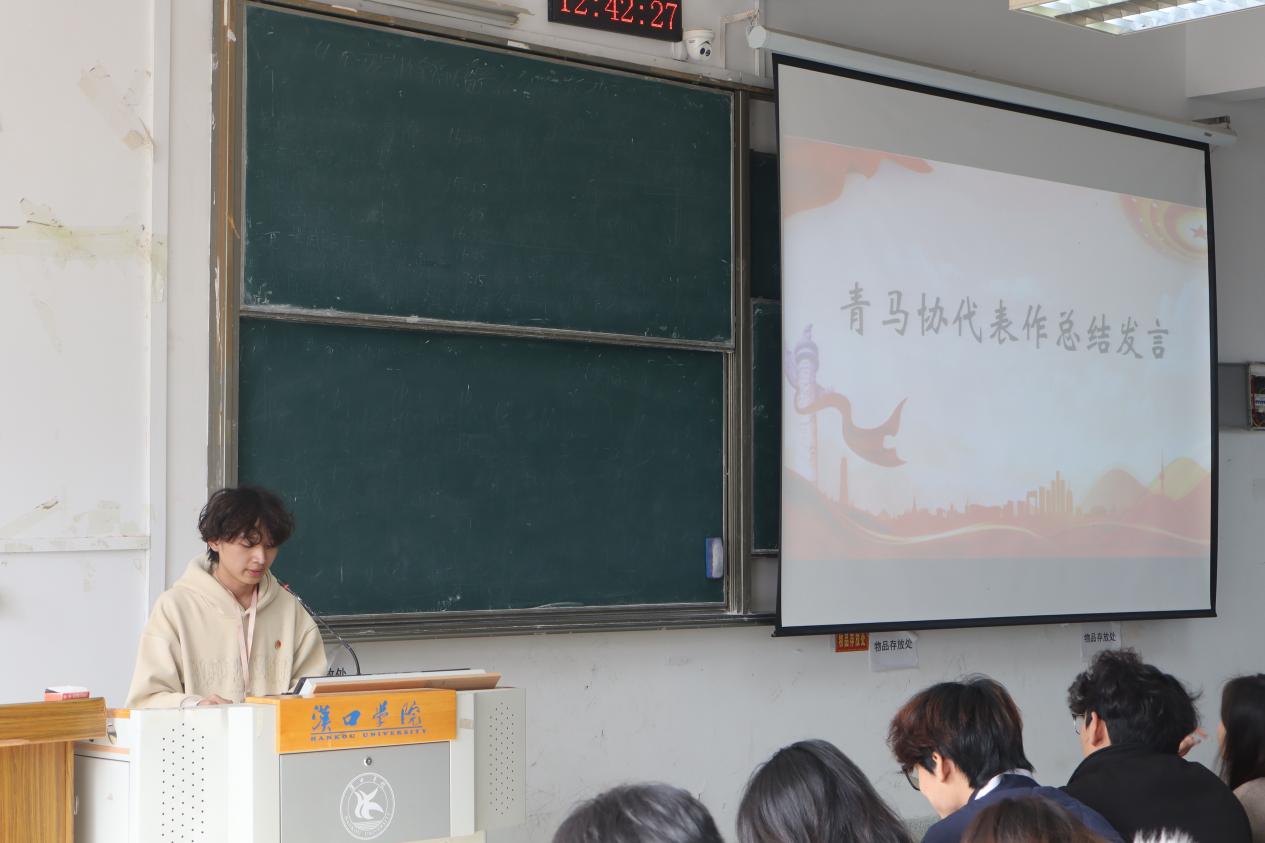 青马办代表郭佳豪发言:他提到,部门组织青马家园参与各类校外志愿活动,不仅营造出奋勇争先、砥砺前行的志愿活动氛围,还通过明确岗位分工、落实岗位职责,让部员在实践中积累经验、锤炼能力。