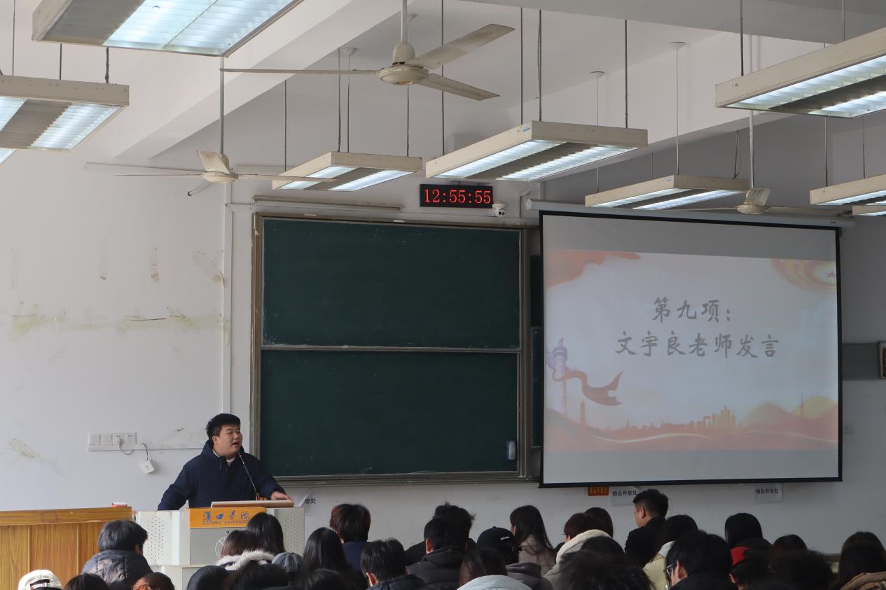 第九项:宣传中心指导老师文宇良发言:他回顾了学生干部从青涩到成熟的成长蜕变,对大家在年度工作中的付出与贡献予以肯定和感谢;同时表示,希望后续能继续得到学生干部的支持与配合,勉励大家扎实做好每一项工作内容,在实践中不断提升工作能力与综合素养。