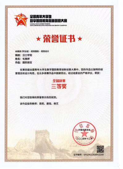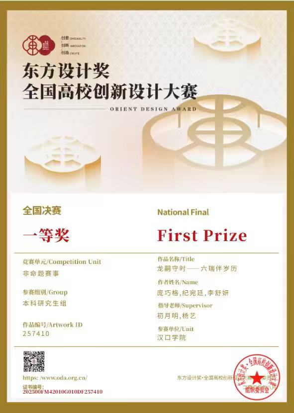 在学科竞赛的赛场上,杨老师始终是学生最坚实的后盾。在2025年“国青杯”高校艺术设计作品展评中,她获评优秀指导教师;指导学生参与第四届全国青年大学生数字国防教育创新创意大赛,斩获全国决赛三等奖;在东方设计奖全国高校创新设计大赛中,带领学生拿下全国决赛一等奖;在2024年第十四届“挑战杯”大学生创业计划竞赛汉口学院校赛中,指导作品《建筑废料智能分拣箱》荣获一等奖。