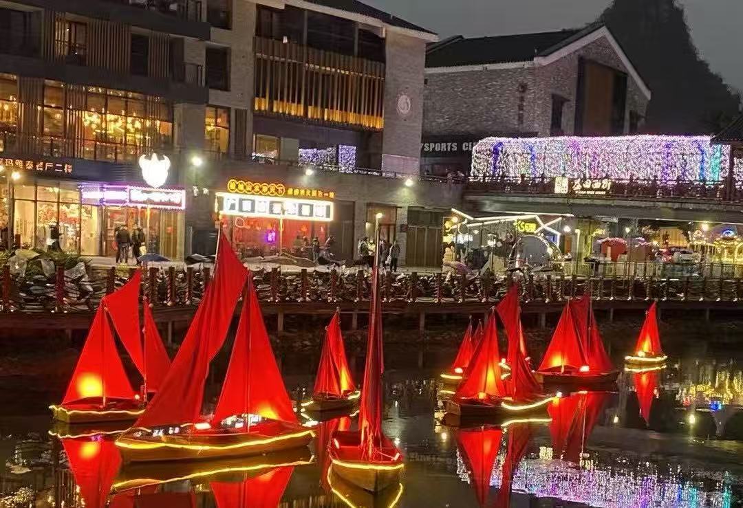 提及“灯”,自不能略过桂林的河灯。人们把写有祝福的河灯放入漓江或遇龙河,以此寄托思念,祈福平安。暮色四合时,漓江两岸、遇龙河畔满是温馨光景,人们手持各式河灯,将心愿细细写于灯面,轻轻放入碧波。盏盏河灯顺流漂浮,烛光摇曳映亮水面,与岸边灯火交相辉映,如星河落江,温柔又浪漫。晚风拂过,灯影随波轻晃,带着祈愿缓缓漂向远方,家人相伴、友人同游,笑语伴着流水声,这份独属于桂林的河畔灯韵,让新春的美好与期盼,都随河灯静静流淌在山水间。