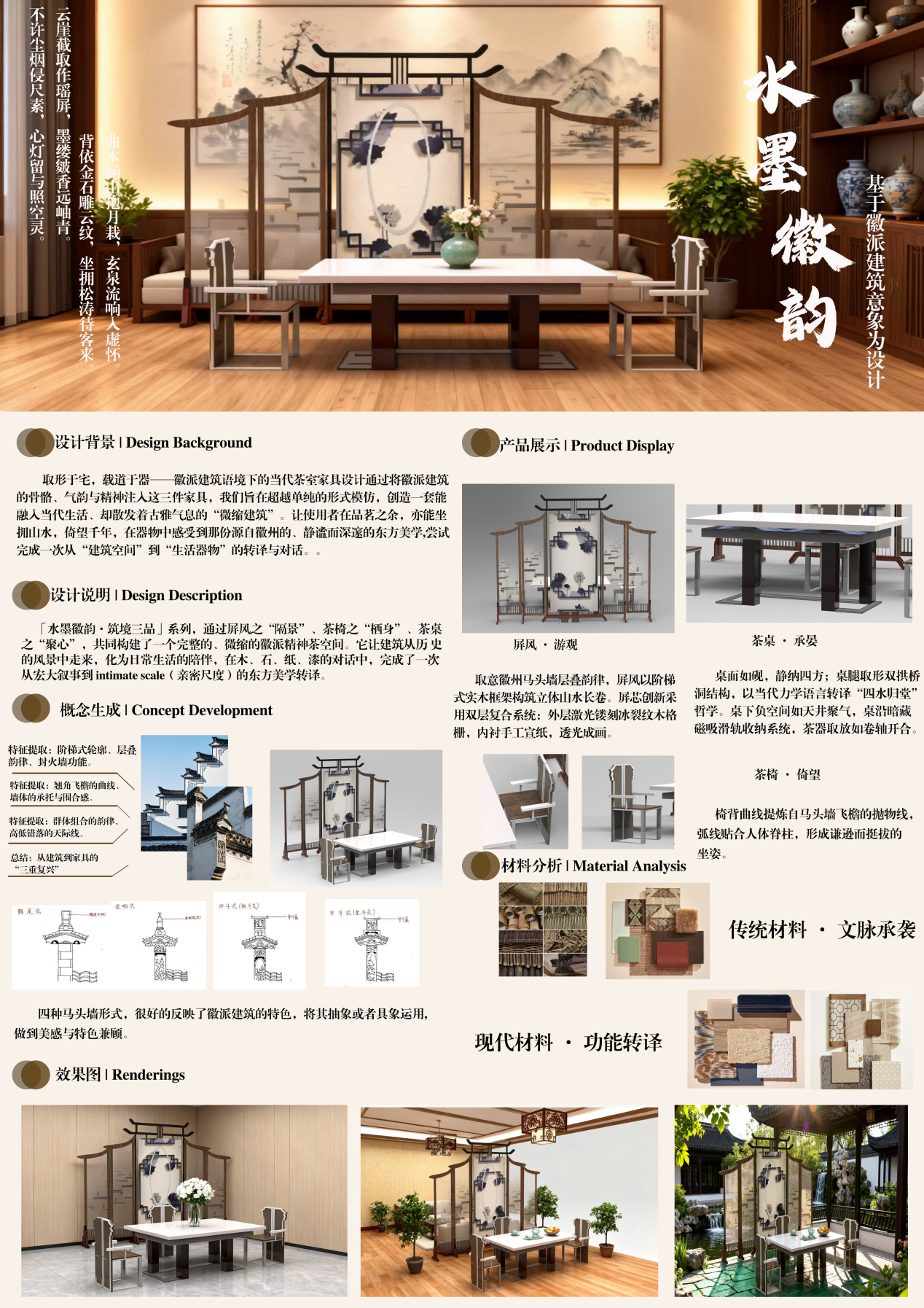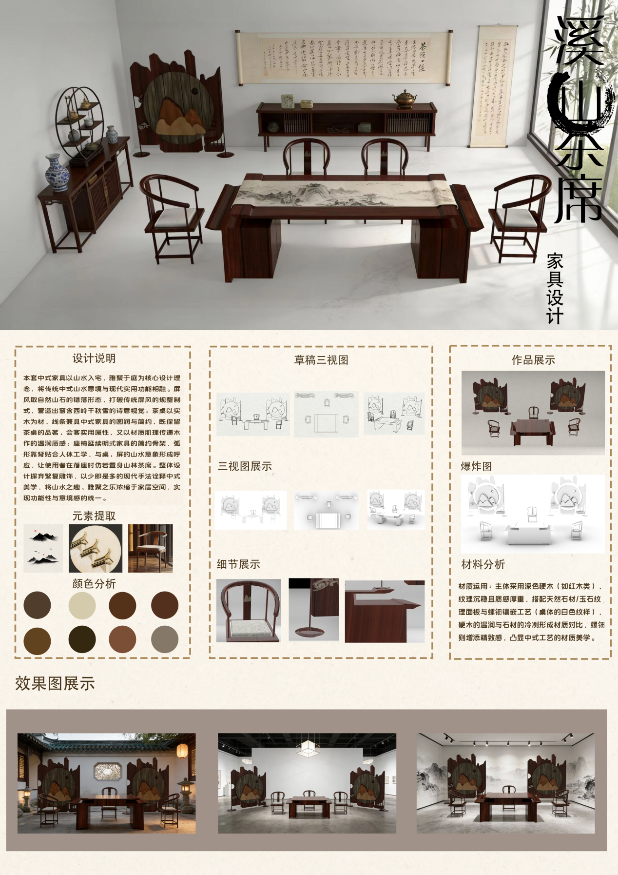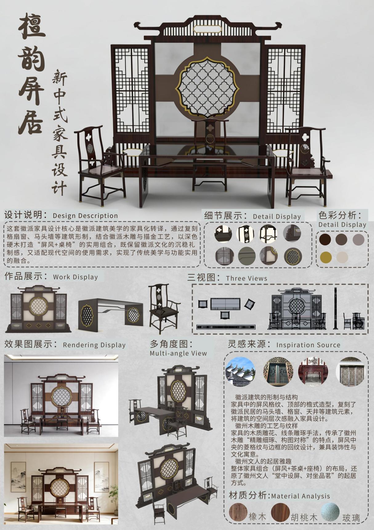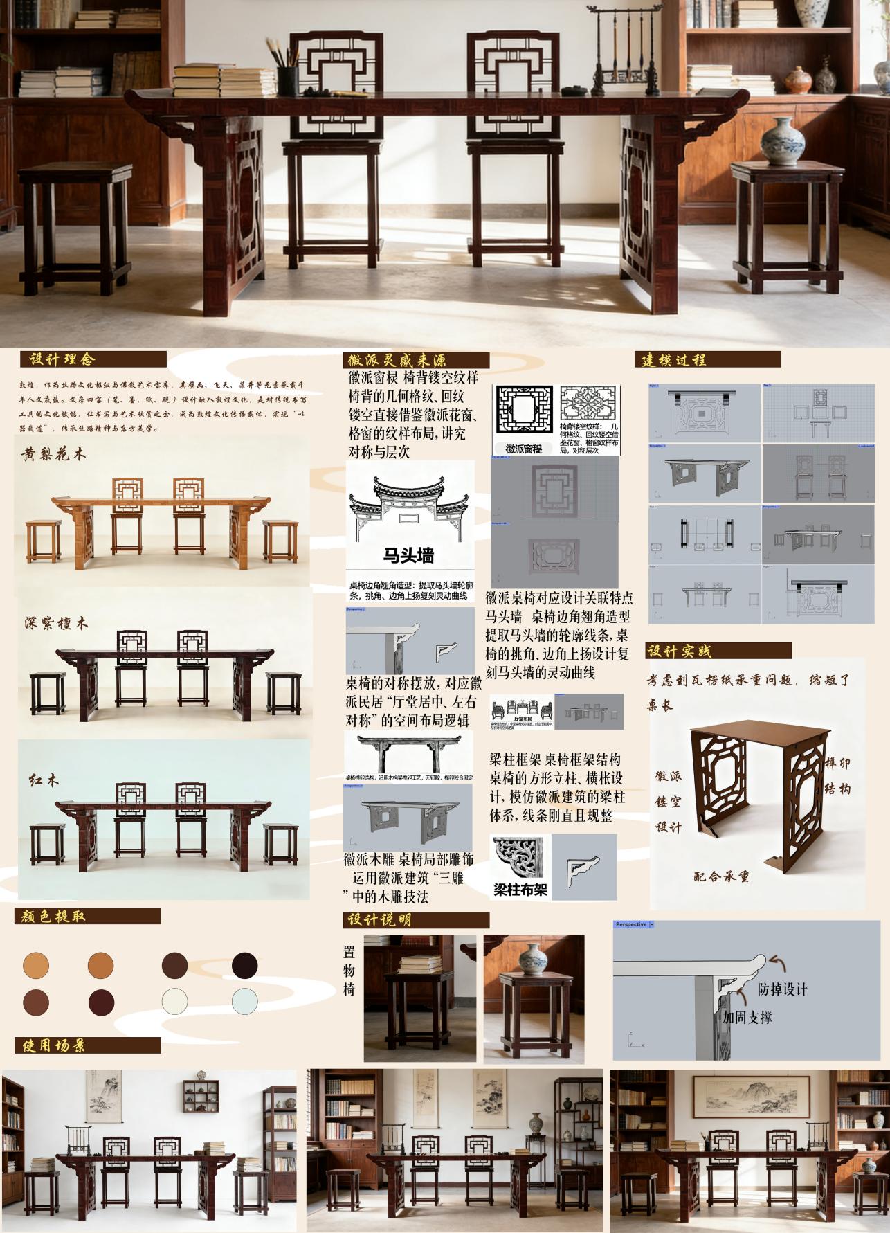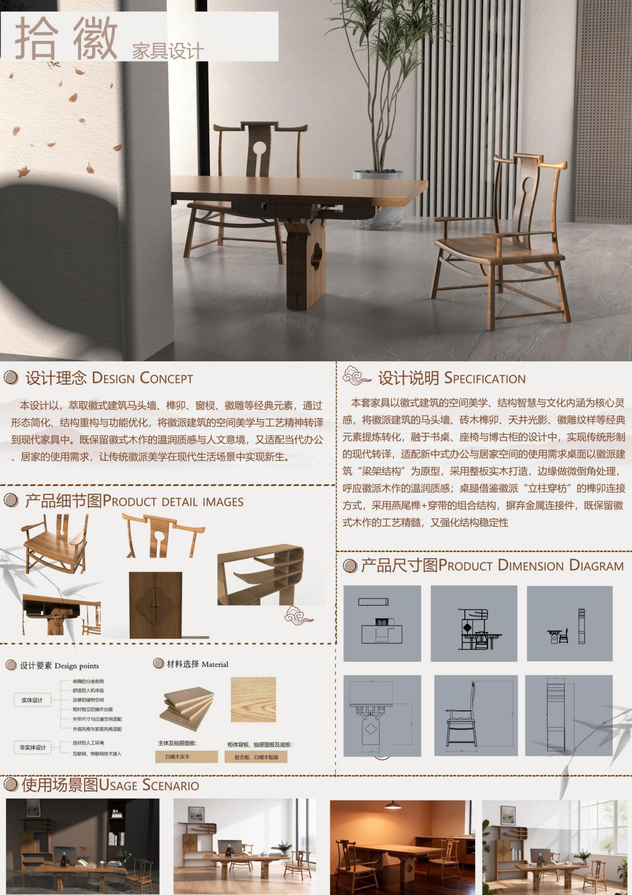 《家具设计》是产品设计专业的一门专业选修课程,本课程旨在帮助学生掌握家具设计的基础理论、方法与实践技能,培养学生从用户需求、文化内涵、功能结构、材料工艺四个维度进行家具创新设计的能力。通过理论学习与设计实践,学生将理解家具与空间、家具与人的关系,学会定位目标用户并分析其需求特点,进而完成从设计主题推导、元素提炼,到形成兼具实用性、创新性与文化性的完整家具设计方案。