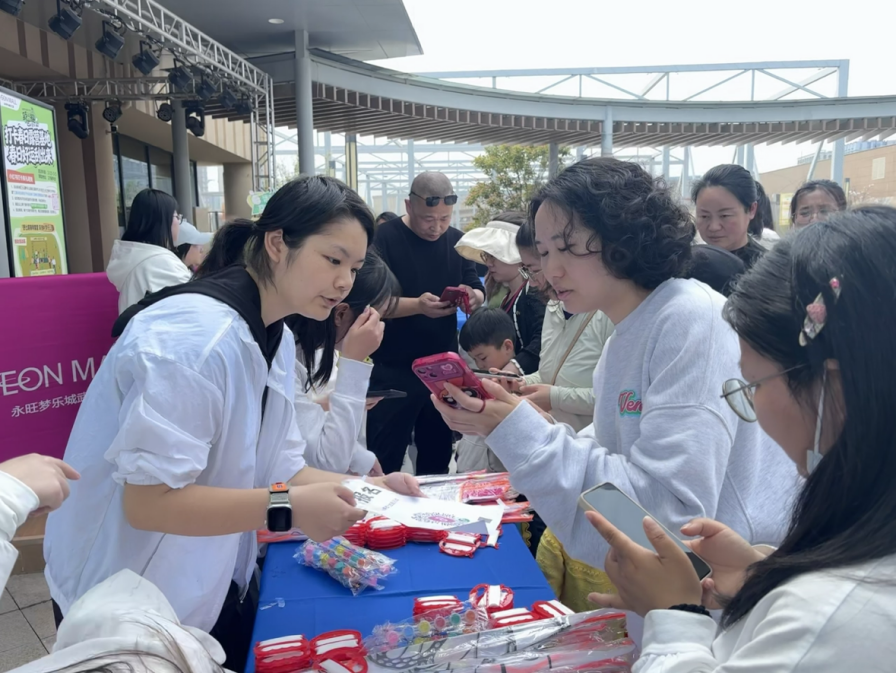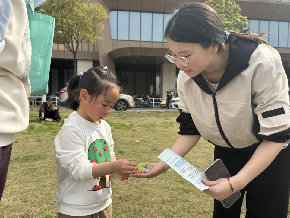 风筝制作完成后,志愿者们有序组织亲子家庭前往开阔场地,全程提供指引与协助,帮助大家完成风筝放飞。在志愿者的帮助下,各组家庭顺利将风筝放飞升空,整场活动秩序井然。活动结束后,志愿者引导亲子家庭凭放飞凭证领取环保手环,并凭手环兑换盲盒礼品袋,在互动中向大家传递绿色环保理念。