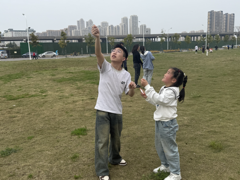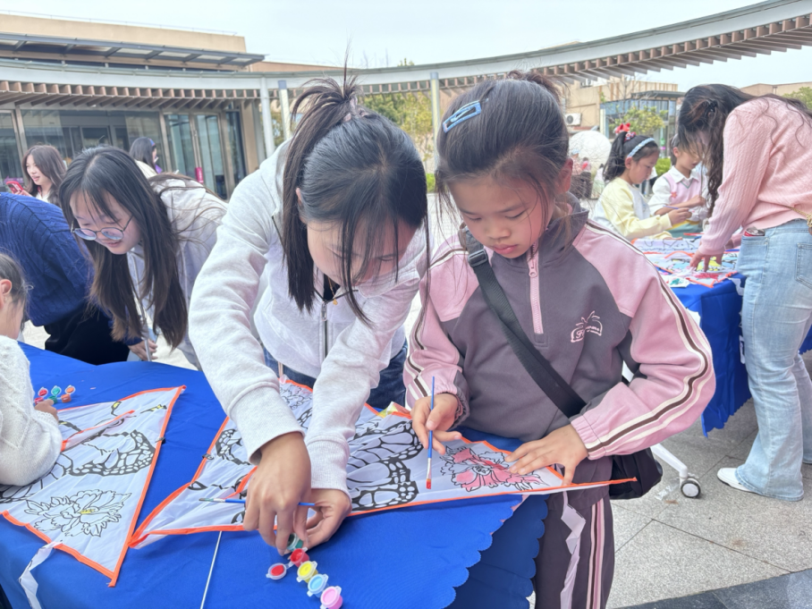 活动现场,我院志愿者引导亲子家庭扫码有序报名、完成信息核验,并为每组家庭分发风筝胚体、彩绘颜料、绘画毛笔等手工材料。志愿者们细致演示风筝组装流程,以规范清晰的操作,为亲子家庭的DIY创作做好示范铺垫。孩子们眼中满是雀跃的光彩,在家长的陪伴与协作下,拿起画笔在风筝面上勾勒心中的美好:一笔一画,是天马行空的创意;一抹一色,是对自然的热爱与守护。